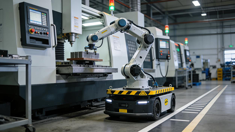 CNC數(shù)控機床上下料是復(fù)合機器人的典型應(yīng)用場景。在汽車零部件制造中,AGV搭載機械臂可自主穿梭于多臺CNC設(shè)備間,完成工件精準(zhǔn)抓取、上料、下料全流程。某3C電子廠引入AGV復(fù)合機器人后,插件合格率從95%提升至99.2%,每月返工成本從6萬元降至1.2萬元,年節(jié)省人力成本18萬元,投資回收期僅18個月。