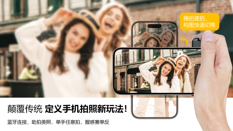 全能遙控操作:可拆卸藍(lán)牙遙控器設(shè)計(jì),支持輕按對(duì)焦、重按拍照,一鍵錄像等功能。更巧妙的是,還能通過鏡頭翻轉(zhuǎn)控制補(bǔ)光燈和相機(jī)曝光,讓創(chuàng)作更加得心應(yīng)手。