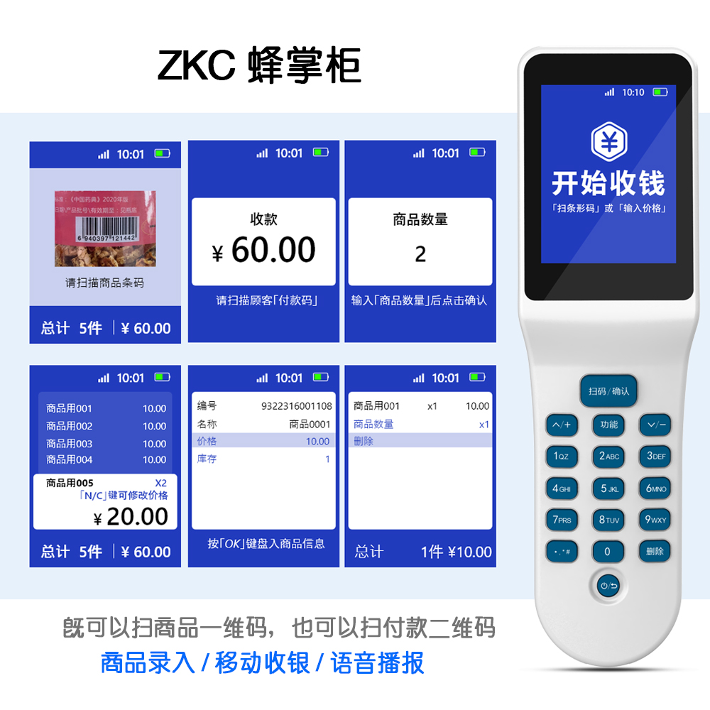 1.使用小店管家,掃碼,匯總,收款,打印,